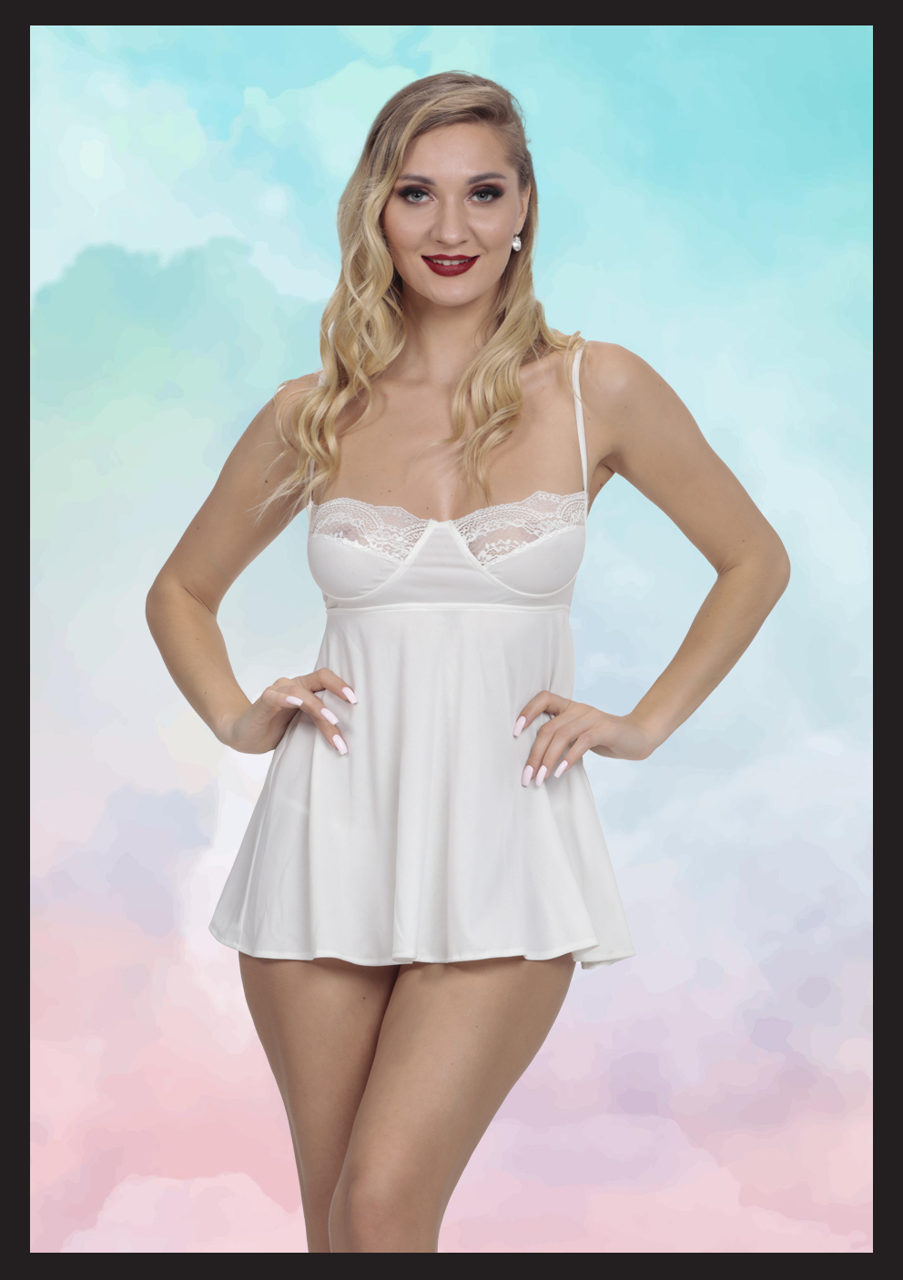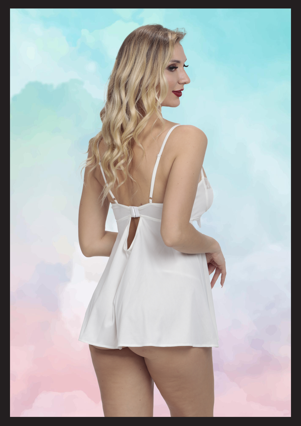 Göğüs kısmındaki zarif dantel işlemeleri ve dekolteyi vurgulayan kesimiyle öne çıkan bu şık gecelik, feminen bir silüet sunar. İnce askılı tasarımı ve belden aşağıya doğru genişleyen dökümlü yapısı sayesinde vücut hatlarını nezaketle sararken hareket özgürlüğü sağlar. Hem konforlu bir uyku deneyimi hem de özel anlar için vazgeçilmez bir tercihtir.